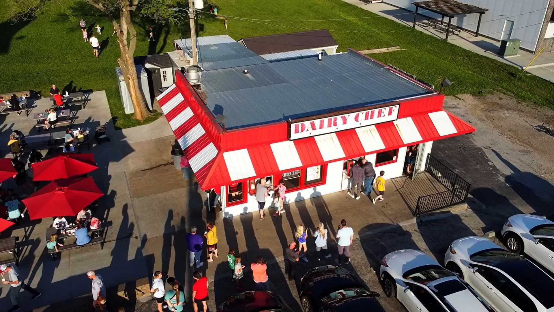 Food, drinks, and ice cream for sale at Dairy Chef.